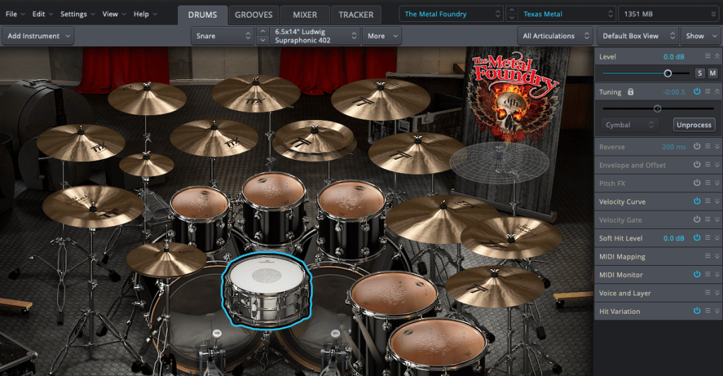 The Drumming Demons channel is setup to use Superior Drummer 3. The kit setup is The Metal Foundry Library set to the Dug Out – Daniel Bergstrand Texas Metal Kit.