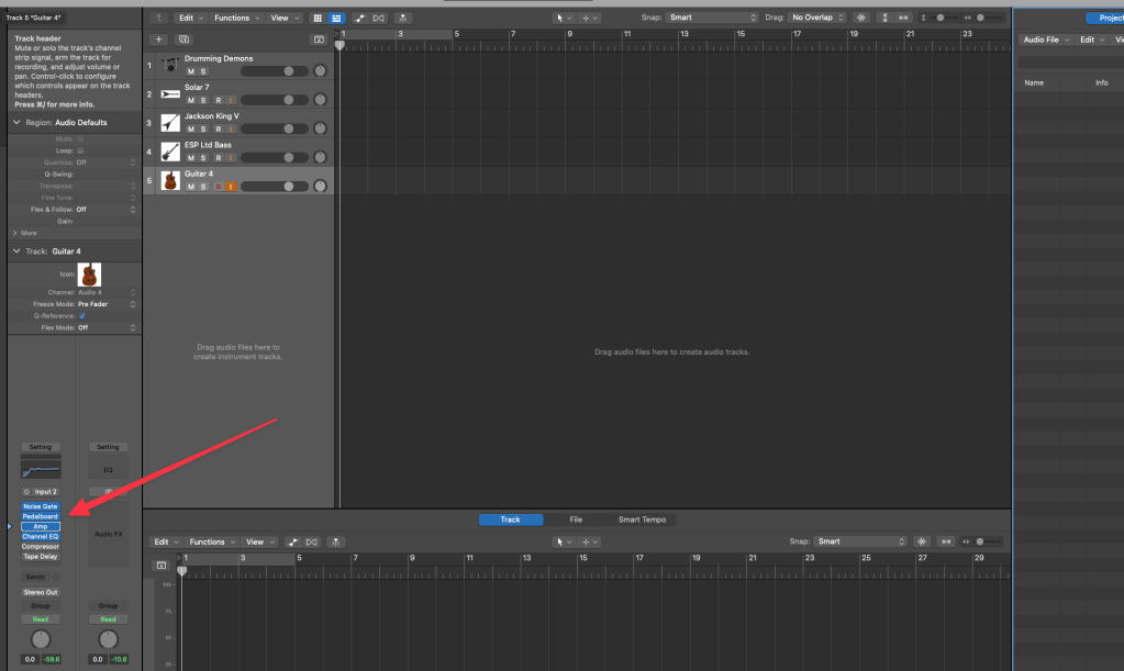 A few things worth setting up when you’re getting started with Logic Pro X is to setup a template for your sessions. For myself I generally have several instruments I use at any particular time. With each of those instruments I have custom settings, amps, and other configurations that I like to have ready to jam with. My template ends up looking – at least today – something like this.